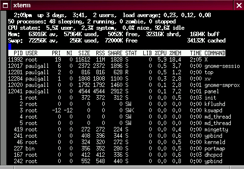 (To learn more about the top command, type man top at the shell prompt; to move forward a screen, press the Spacebar; to move back a screen, press B; to quit, press Q. You'll learn more about these man pages later in this chapter.)