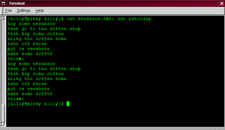 The contents of both files will be displayed - first sneakers.txt, then saturday (as shown in Figure 3-14).